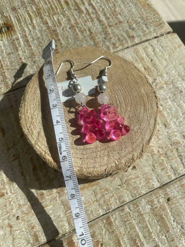 Boucles d'oreilles Ourson et ses vraies pierres naturelles : quartz Rose